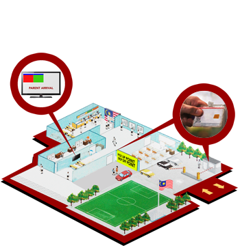 In institutions where large numbers of students or staff end the day at an allotted time, our integrated pickup system ensures safe and convenient pickup via access card readers that communicate with electronic signage systems.